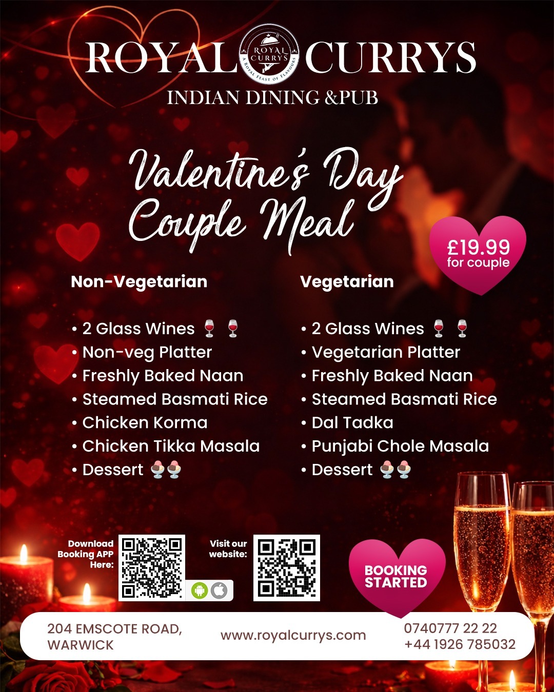 Valentine’s Day Couple Feast – Celebrate Love at Royal Currys (Feb 13th – Feb 14th)