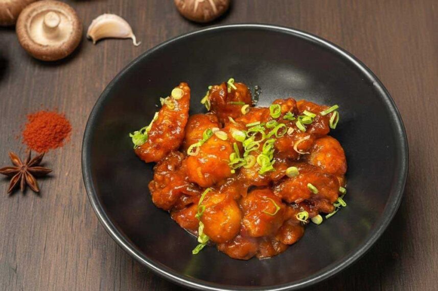South Indian-style fried chicken with curry leaves, ginger, and spices.