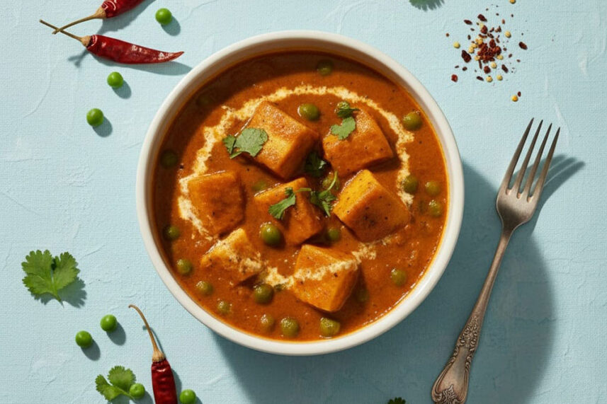 Paneer cubes cooked with peppers, tomatoes, and kadai spices.