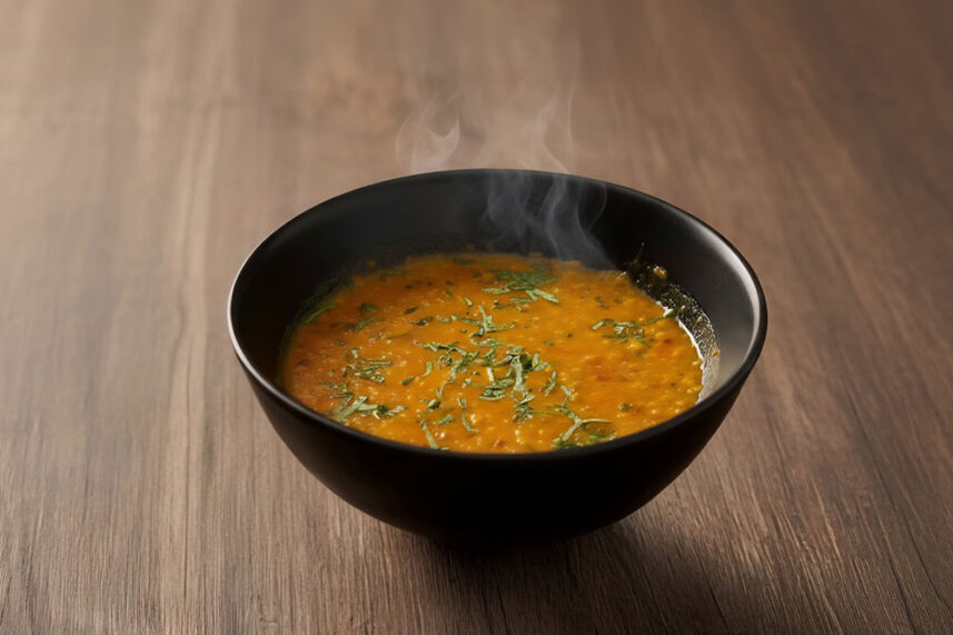 Yellow lentils tempered with cumin, garlic, and tomatoes.