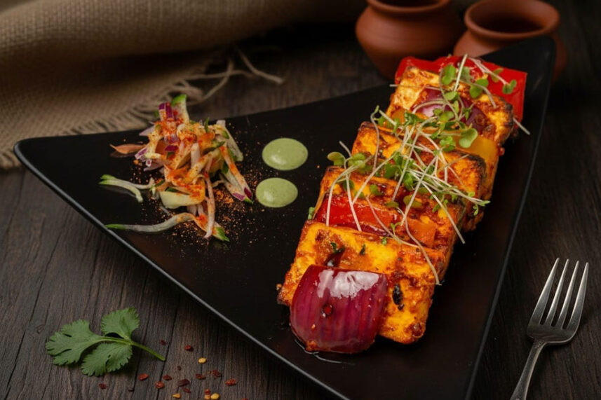 Grilled Cottage cheese skewered in five Indian spices